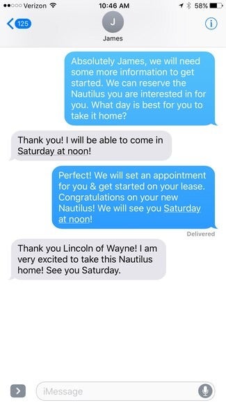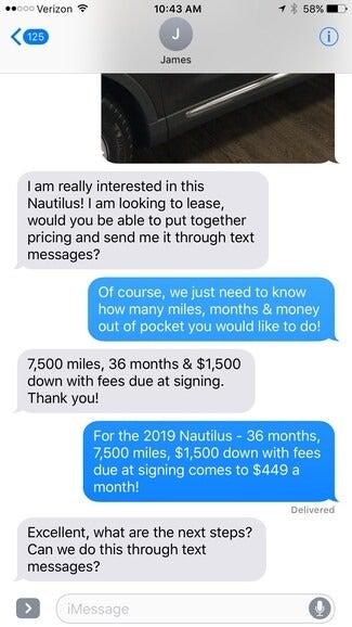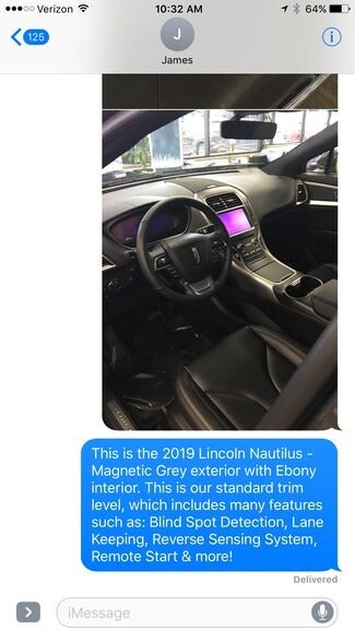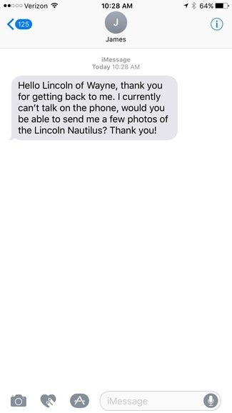 James is looking for a Lincoln Nautilus. We can help him with all of his needs via text.