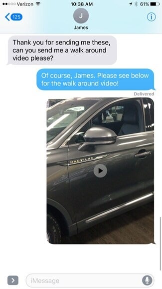 We can even send you videos of the vehicle as well and highlight how certain features operate.